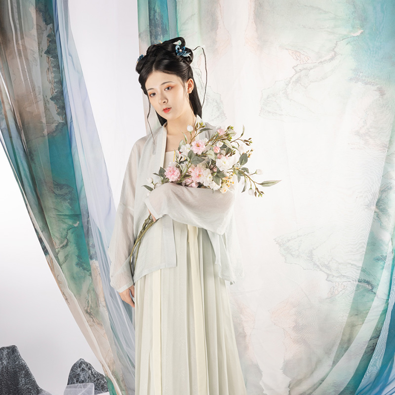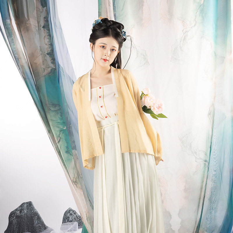 彩云涧 春夏装 宋制汉服 对襟短衫 短褙子百搭时尚 纯色飞机袖