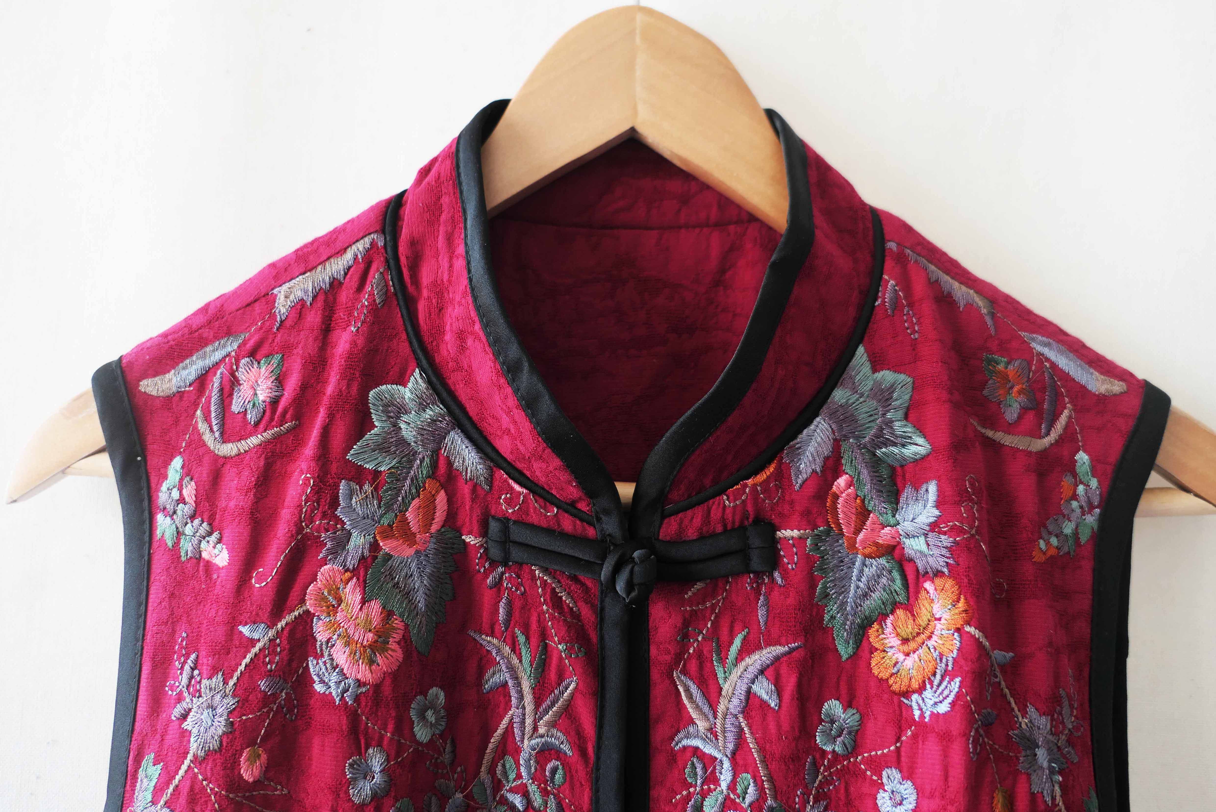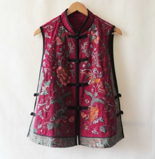 满绣花马甲棉麻盘扣侧面全开系扣民族风女装 圆领单排扣2024年 春季