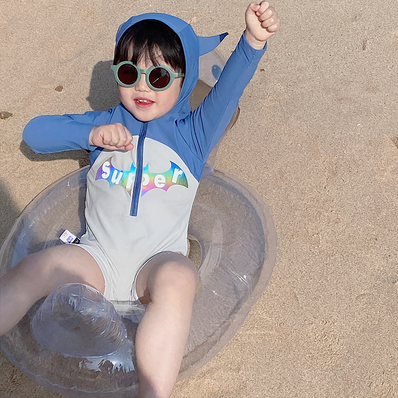 潮 中小童速干海边度假游泳套装 儿童泳衣男童2026新款 宝宝连体长袖