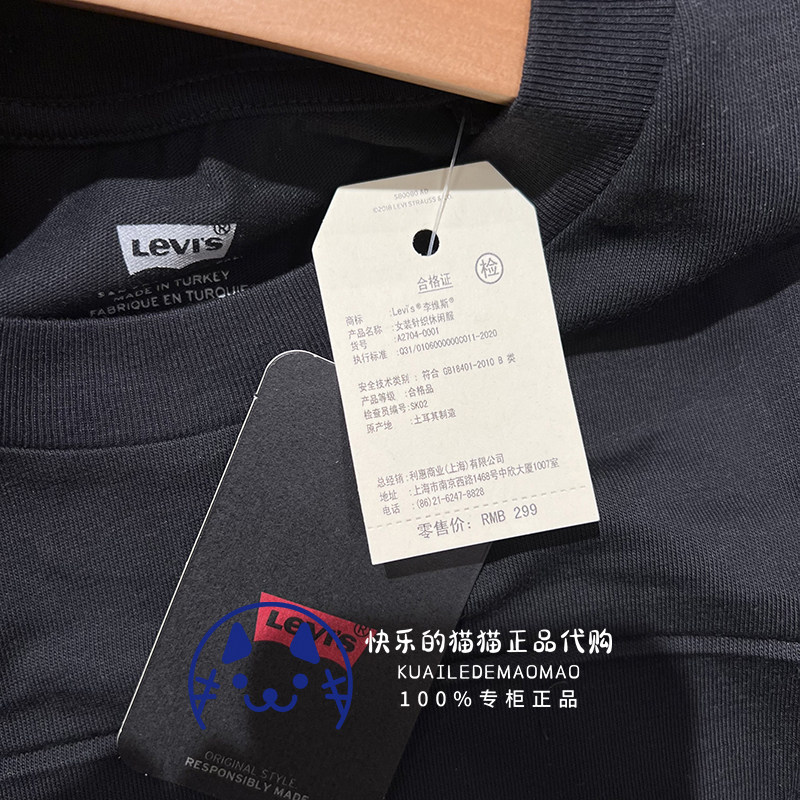 0000 T恤A2704 0001 女士钢印logo宽松短袖 Levis李维斯专柜正品
