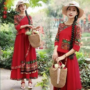 鹿与玫瑰法式 复古一字肩红色连衣裙女气质显瘦高级感礼服裙子长袖