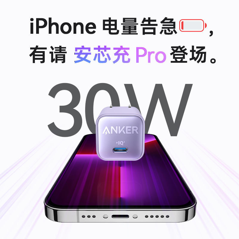 iPad通用充电头 Anker安克安芯充Pro30W快充氮化镓快充充电器适用苹果iPhone17proMax