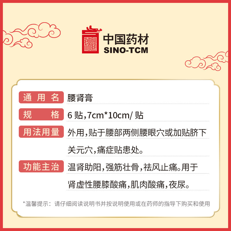 盒中国药材肾虚夜尿补肾腰膝腿酸痛贴 6贴 德众腰肾膏7cm 10cm
