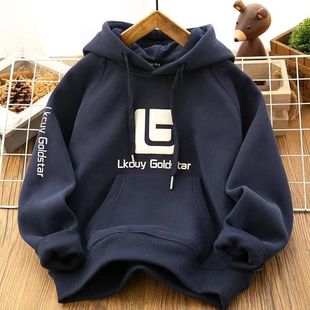 帅气保暖上衣 中大童连帽加厚儿童韩版 男童加绒卫衣2025新款 秋冬装