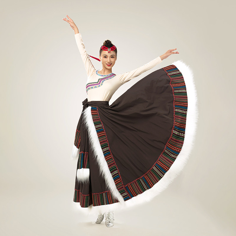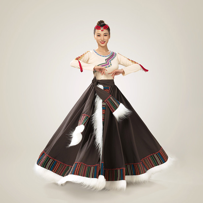 藏族舞蹈表演服少数民族蒙古族演出广场舞大摆裙套装 新款 民族服装