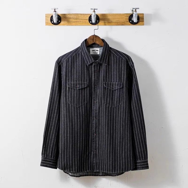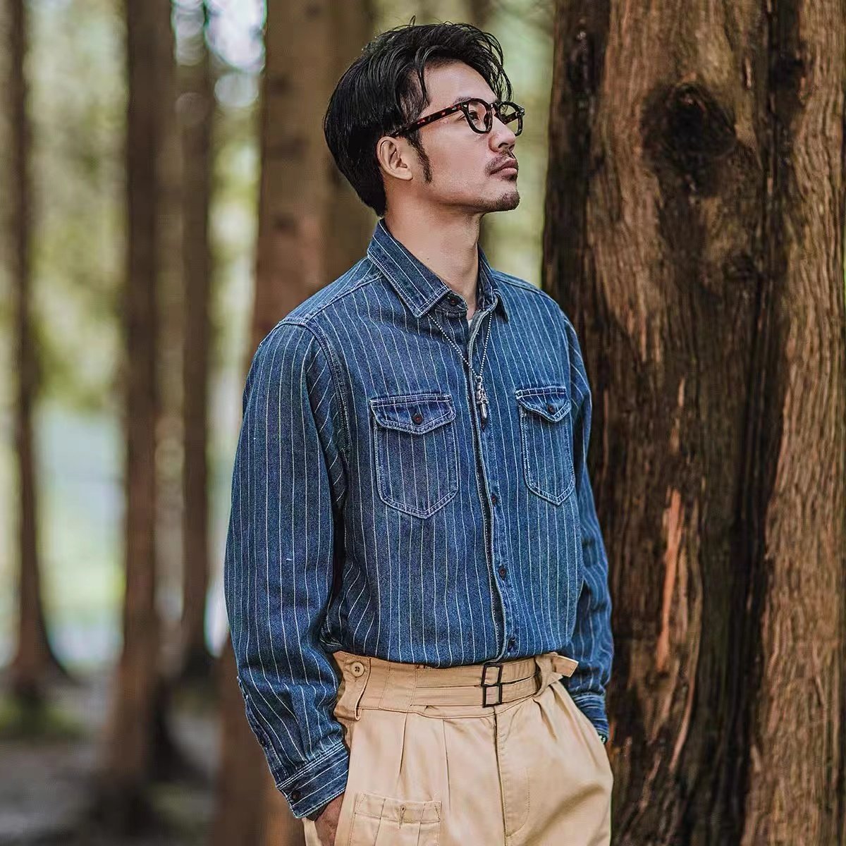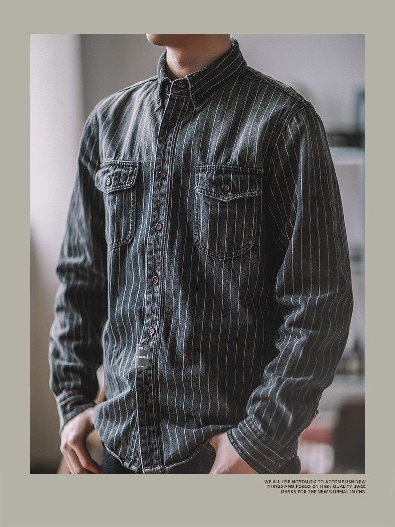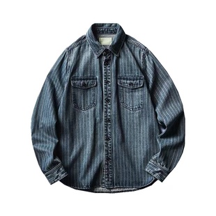 CAMPING露营长袖 复古条纹衬衫 衬衣户外丹宁外套 重磅美式 STK野奢