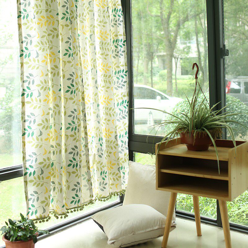 北欧成品窗帘短帘鸟与树文艺门帘半帘穿杆短帘半截帘窗帘柜子拉帘