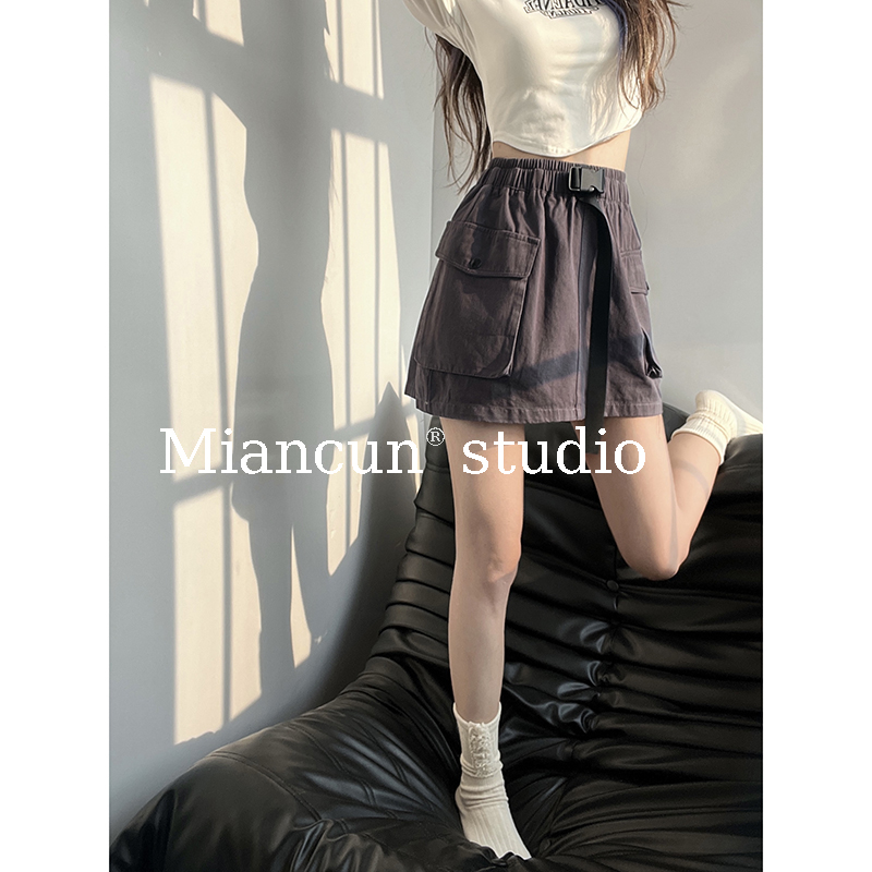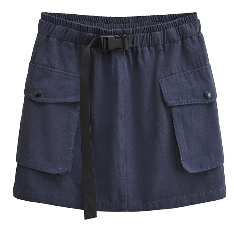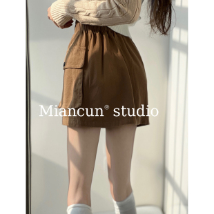 设计感小众高腰工装 半身裙松紧腰显瘦百搭a字牛仔短裙小个子潮ins