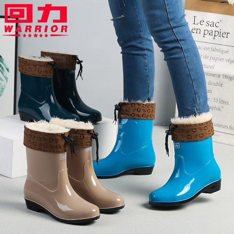 厨房家用防水鞋 加绒保暖防滑水鞋 户外钓鱼雨靴冬 雨鞋 回力高筒男士