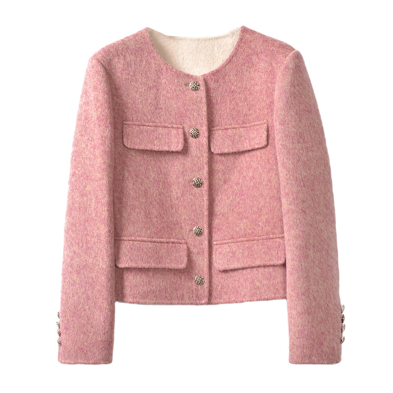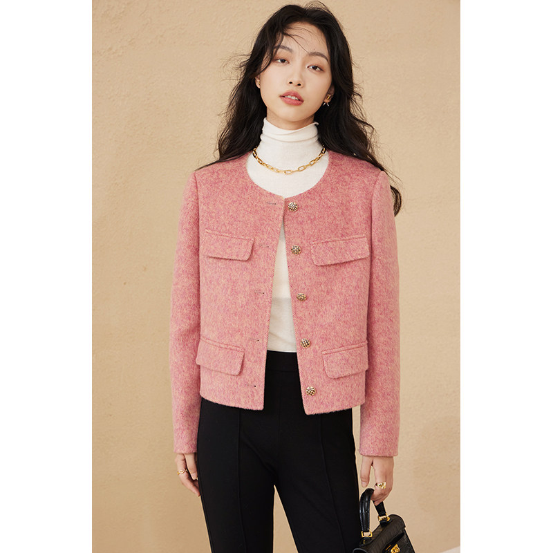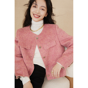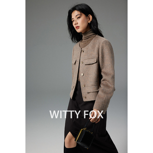 WITTYFOX口碑返场经典 外套 小香风真丝羊毛双面毛呢大衣女通勤短款