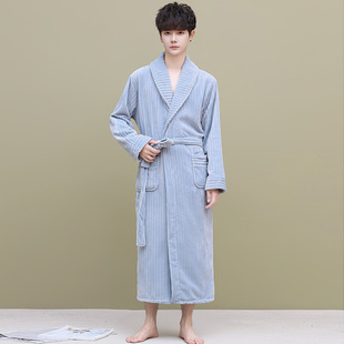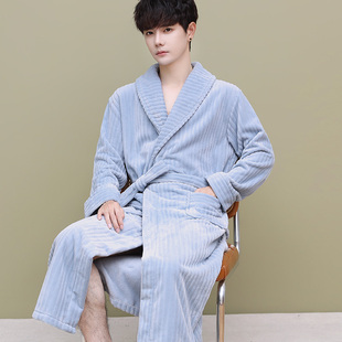睡衣长袍家居服晨袍 加绒法兰绒浴袍大码 加厚珊瑚绒睡袍男款 秋冬季