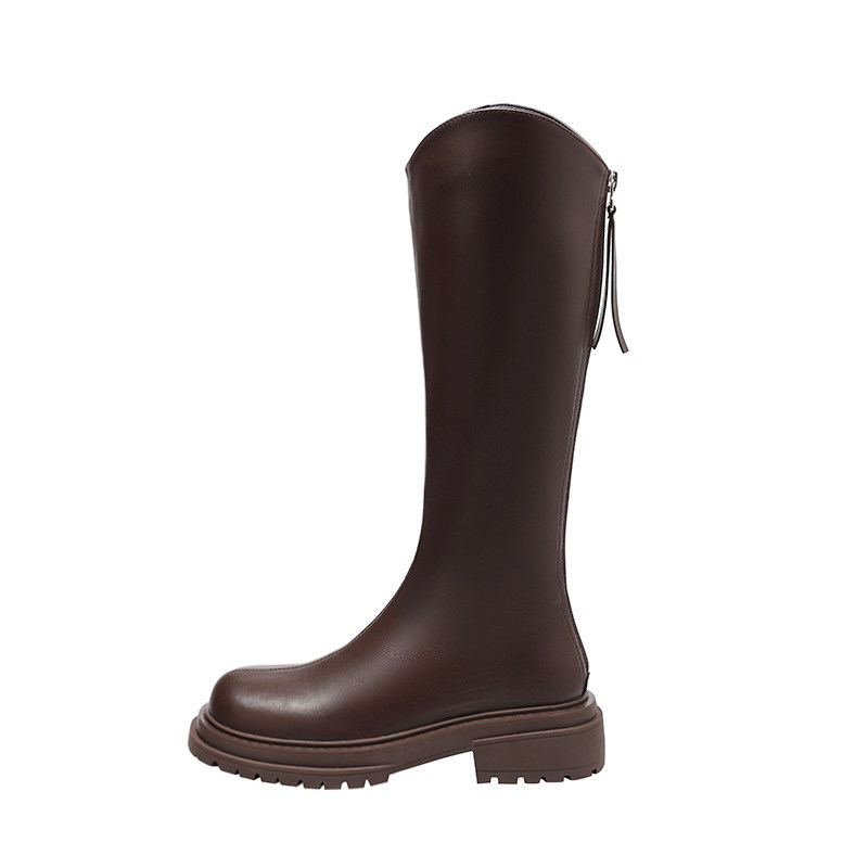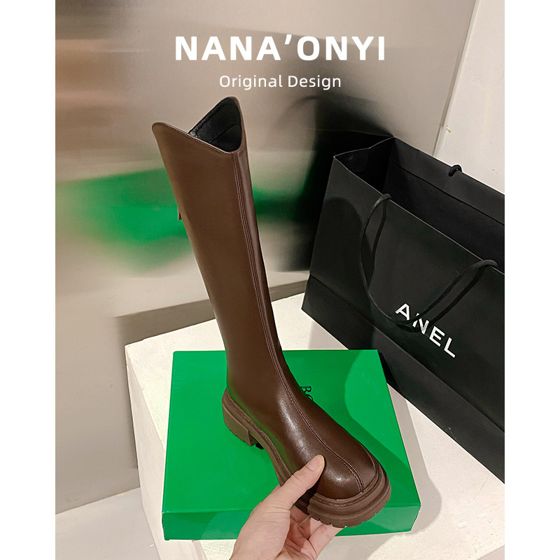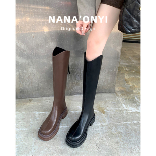 真皮长筒靴女秋冬2025年新款 不过膝厚底v口高筒靴女骑士靴子长靴
