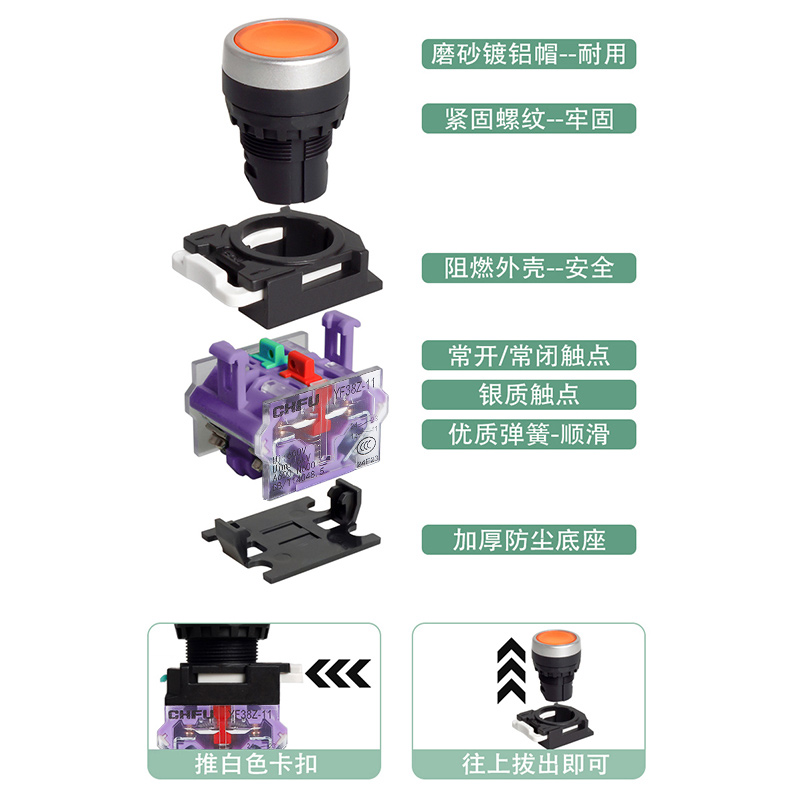自复位自锁22MM 11BN电源启动停止配电箱开关 按钮开关按压式 LA38