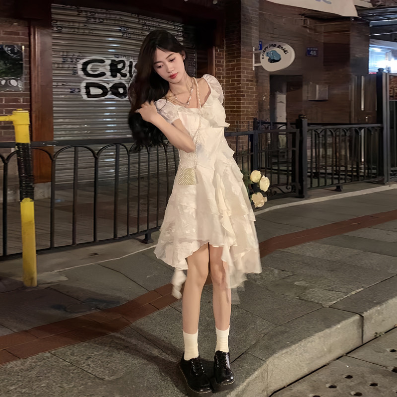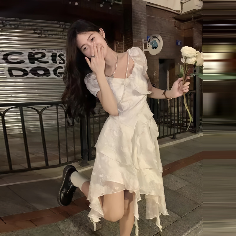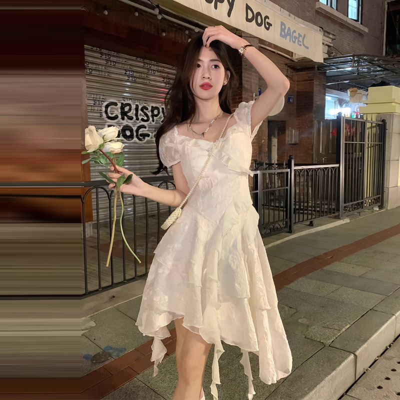 在逃公主初恋白月光荷叶边连衣裙女夏2026新款 甜美气质收腰仙女裙