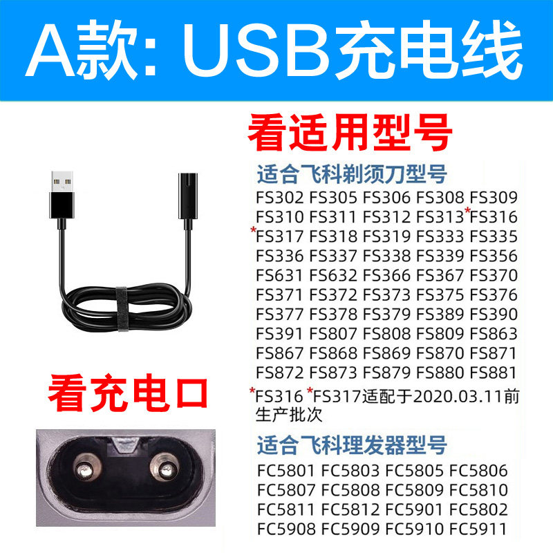 366 371 367 373 372通用 368 适用飞科剃须刀充电器充电线FS370