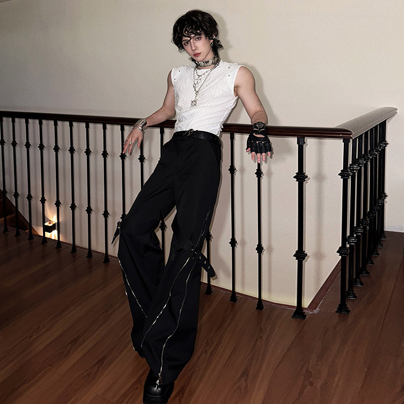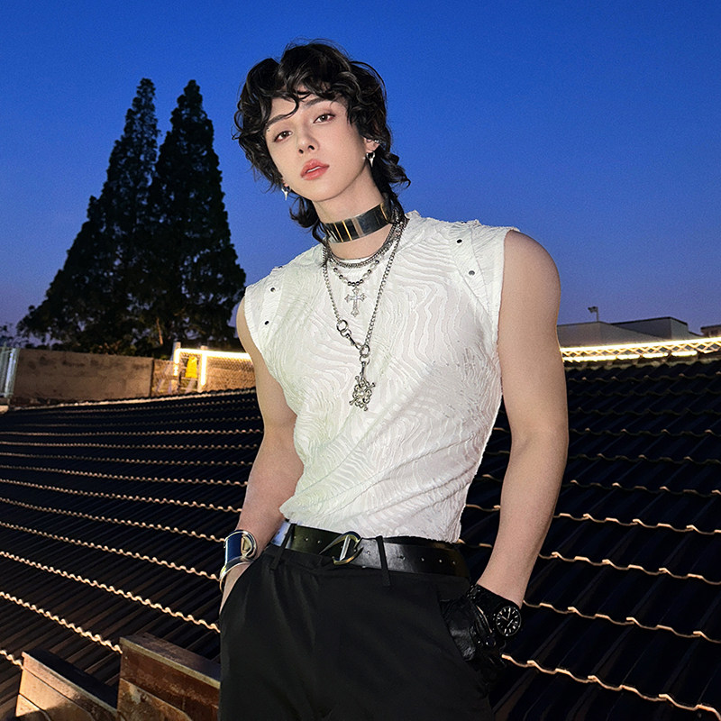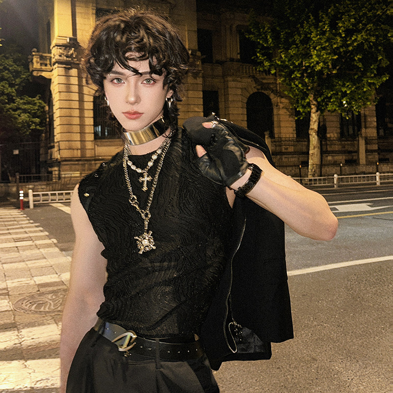 男高街纹理设计感痞帅修身 杨一帆潮牌无袖 新款 夏季 T恤 背心男士