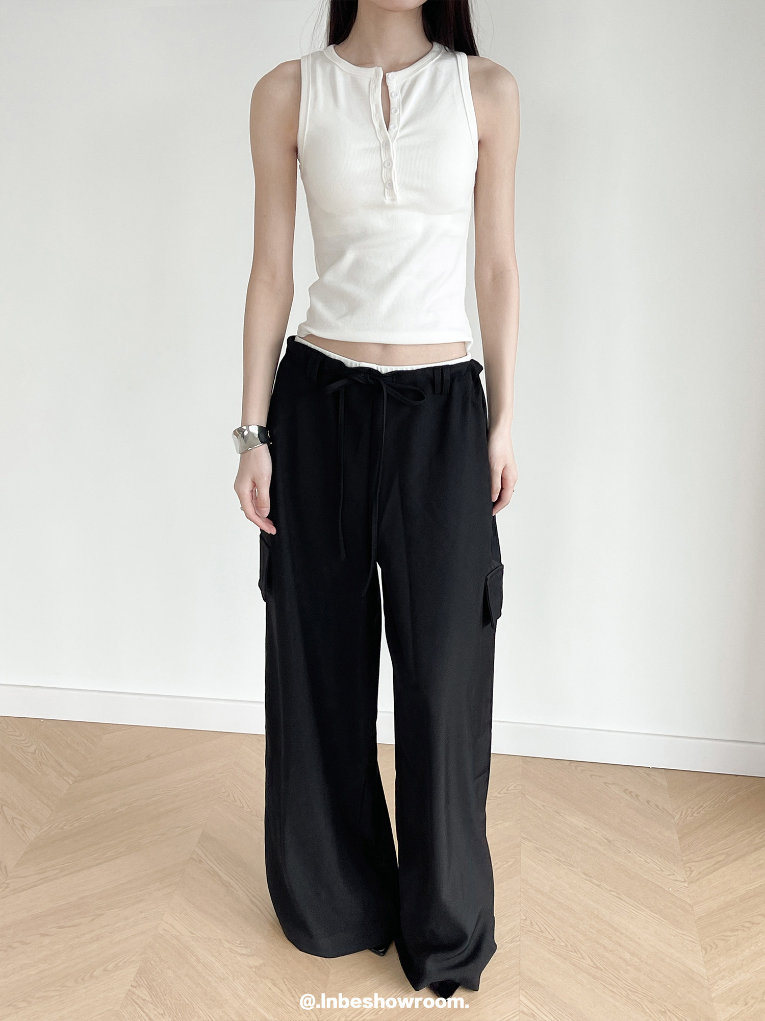 显瘦短款 Inbeshowroom美式 修身 背心女夏季 上衣 纽扣亨利领纯色无袖