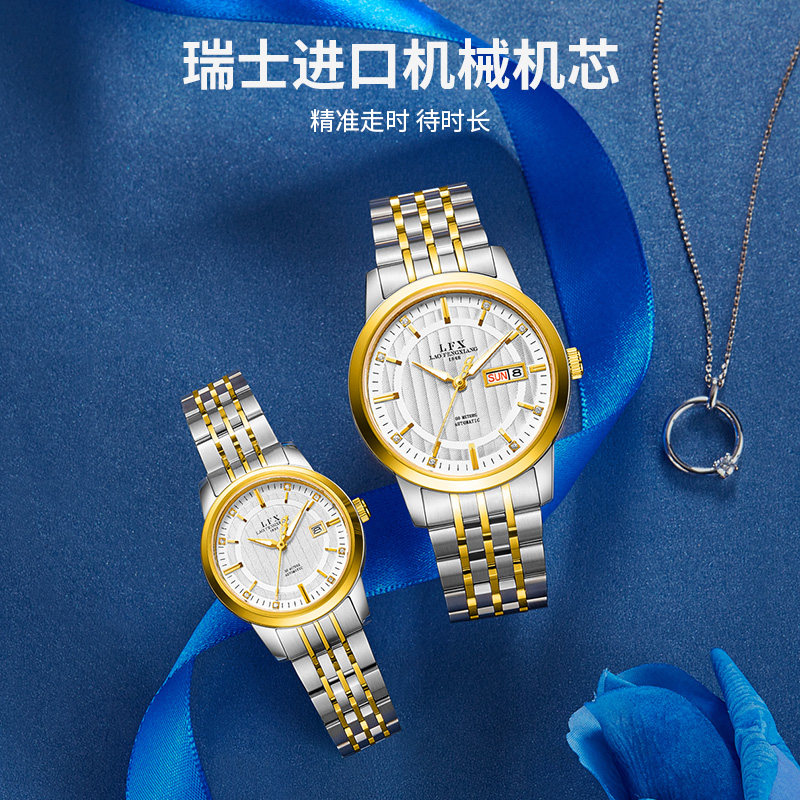 ELFX 至爱同心系列情侣对表防水日历机械表十大 老凤祥手表男女款