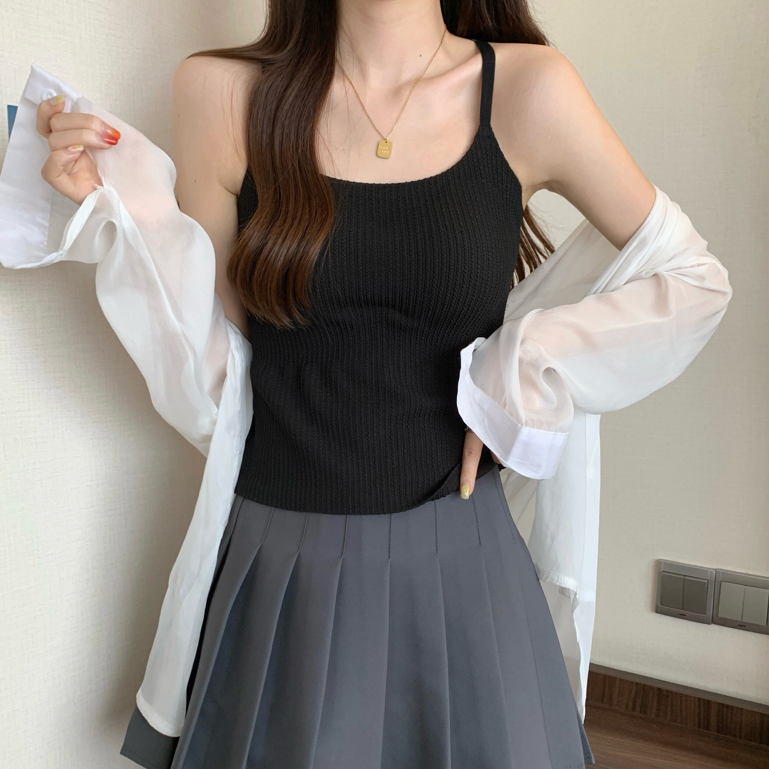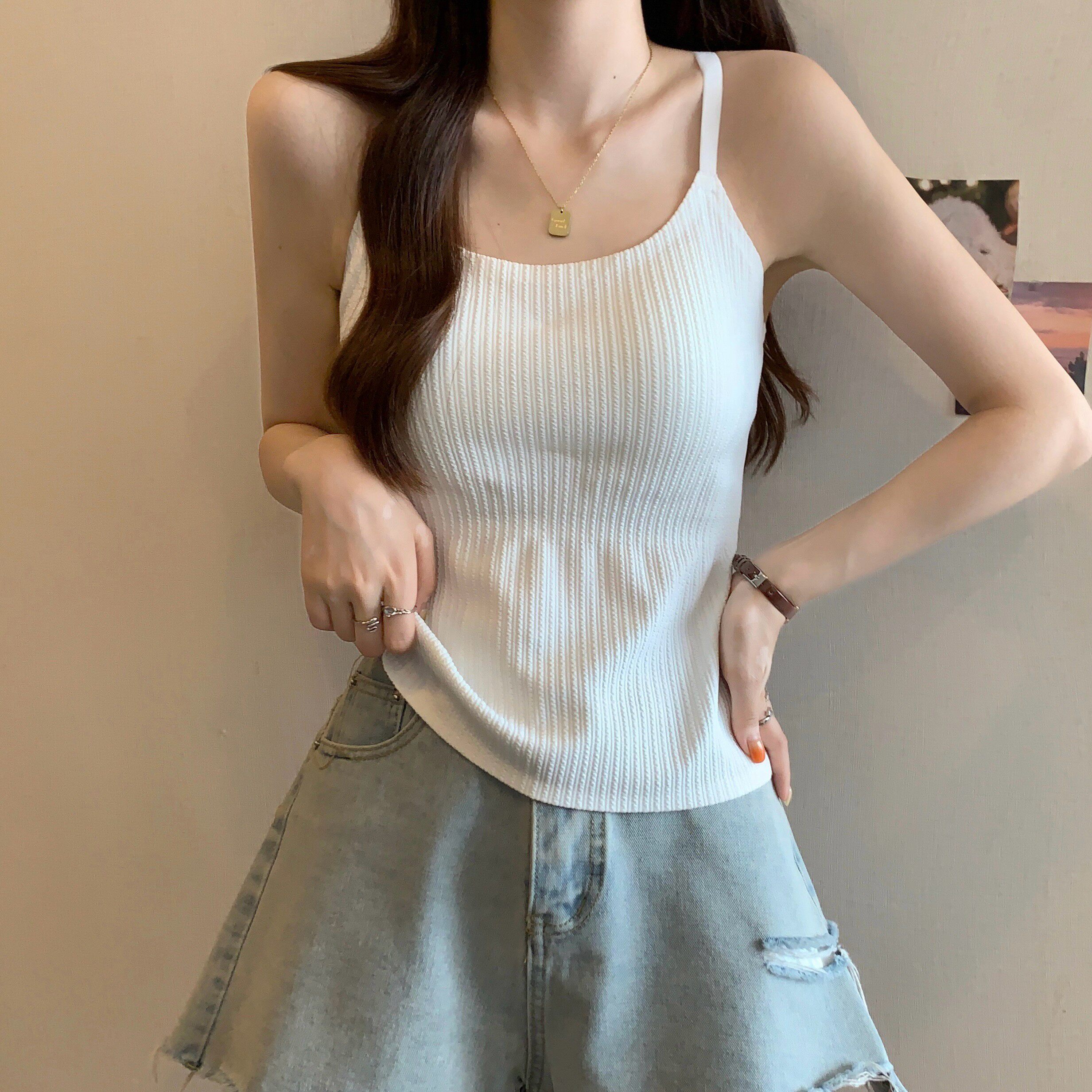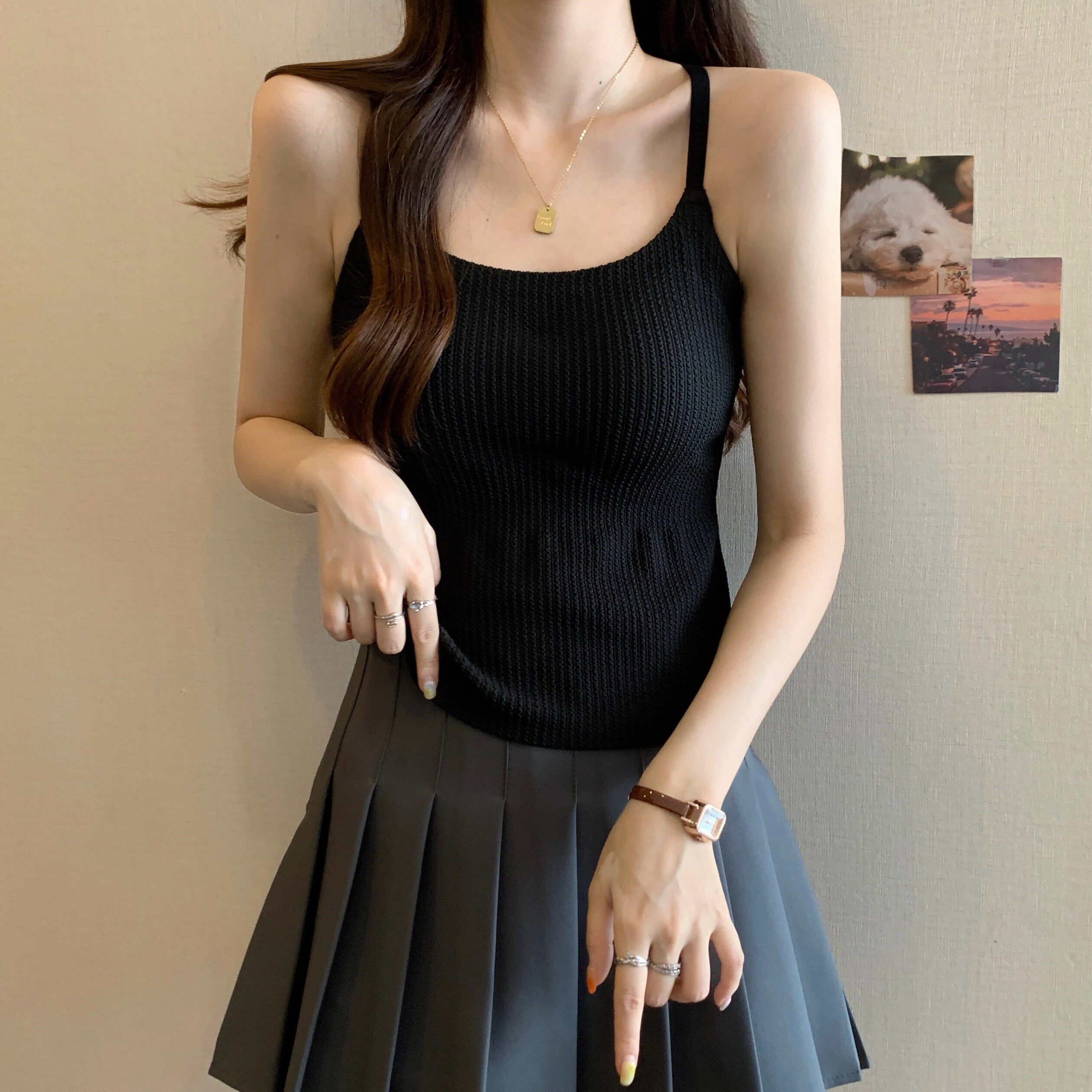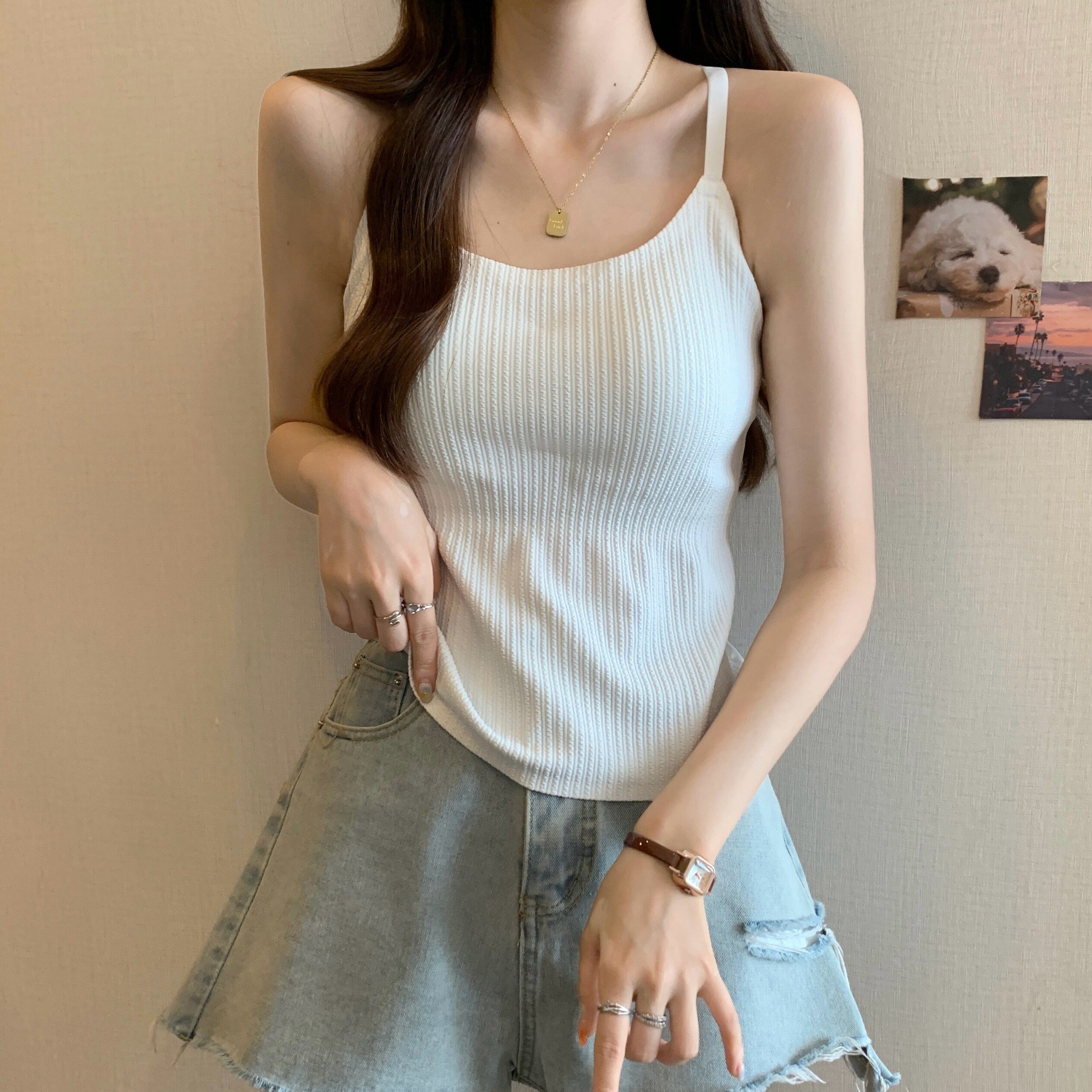 大胸胖mm显瘦针织美背上衣 夏季 大码 带胸垫吊带背心女内搭2026新款