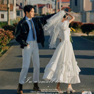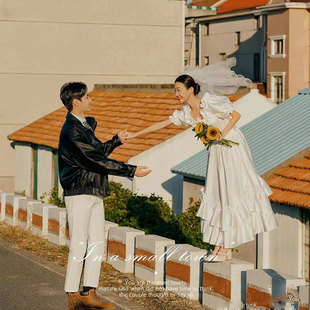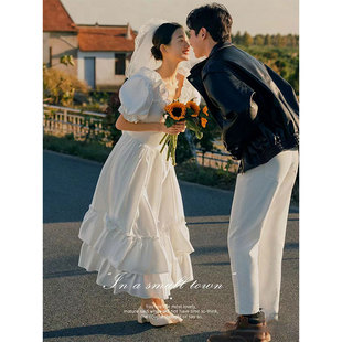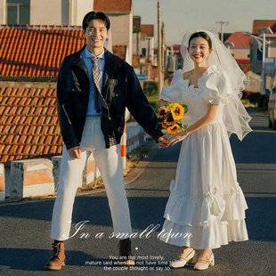 2025新款 小众羽毛甜美风领证小白裙登记礼服夏 旅拍轻婚纱森系短款