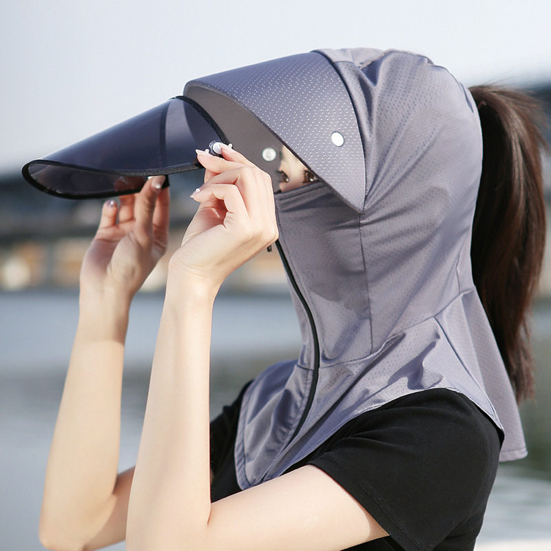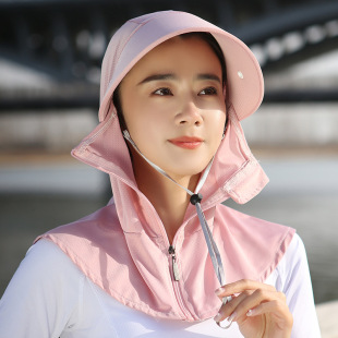 冰丝防晒帽子女夏季 遮阳帽遮脸口罩一体面罩帽骑车防紫外线太阳帽