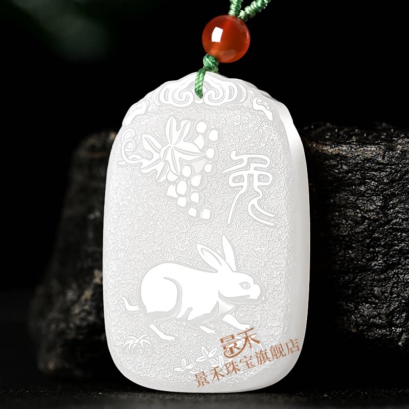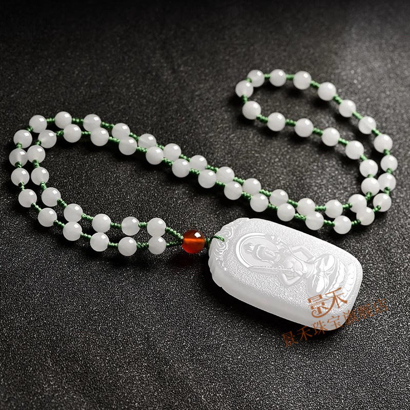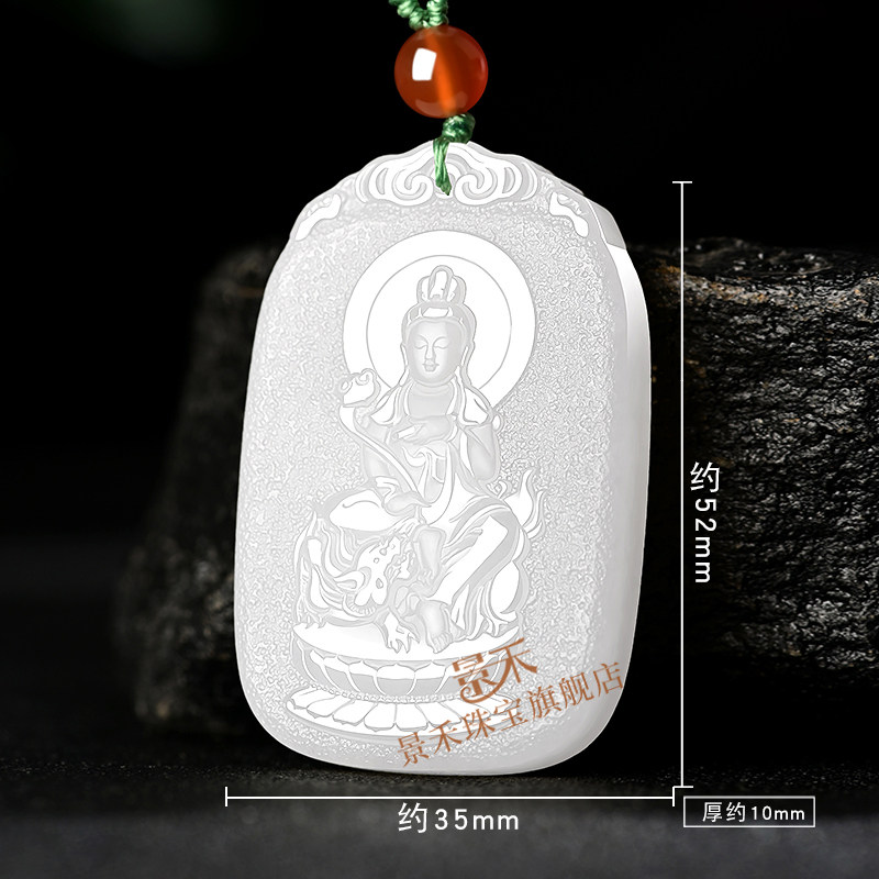 和田玉羊脂白玉生肖兔本命佛吊坠文殊菩萨本命年玉石项链男女玉牌