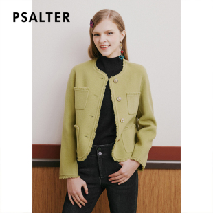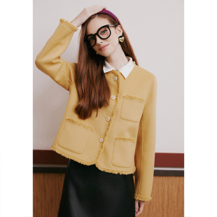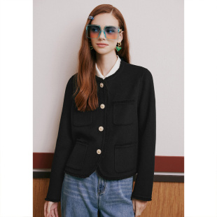 诗篇专选春简约圆领学院小香风羊毛双面呢毛呢短外套