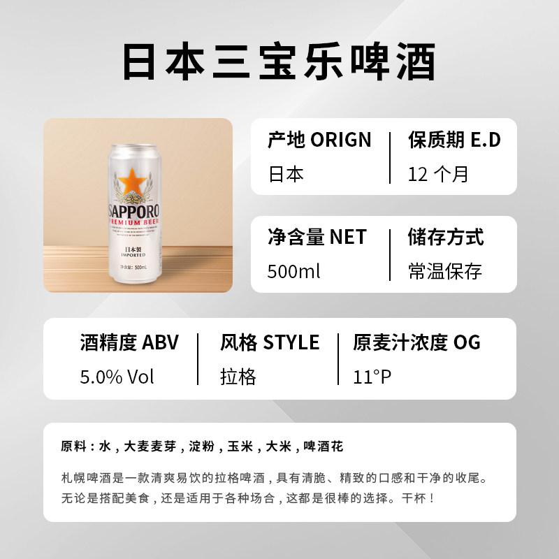 北海道风味含啤酒杯 8听礼盒装 SAPPORO 三宝乐啤酒日本进口500ml