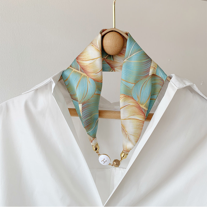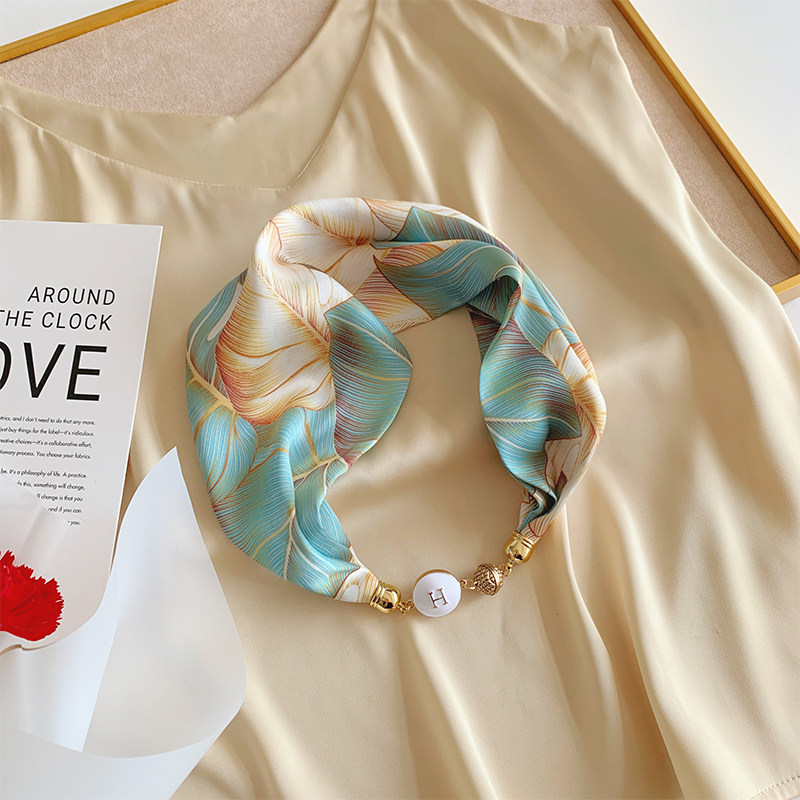 磁吸丝巾女2025新款 围巾秋冬高级感护颈小围脖项链珍珠扣搭配衬衫