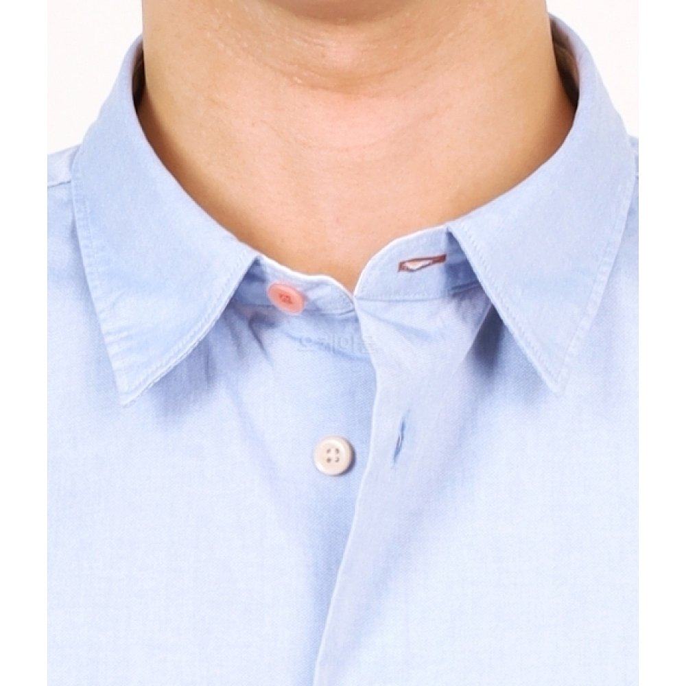 双色水洗磨毛长袖 几立 牛仔衬衫 夕阳倒映在蓝色天际