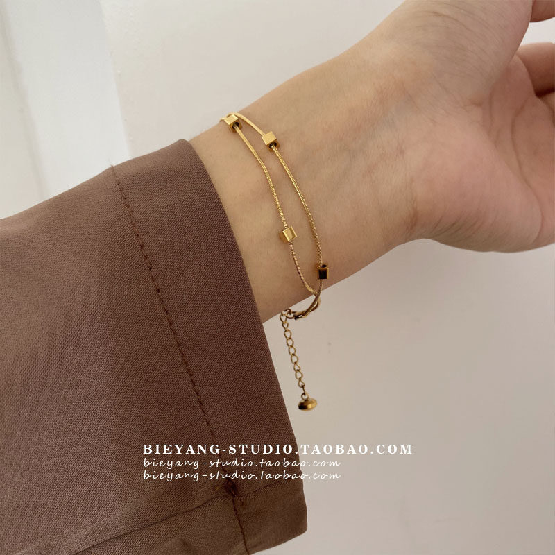 庆祥泰真品朱砂手串女款 官方旗舰店天然和田玉足金黄金手链女 正品