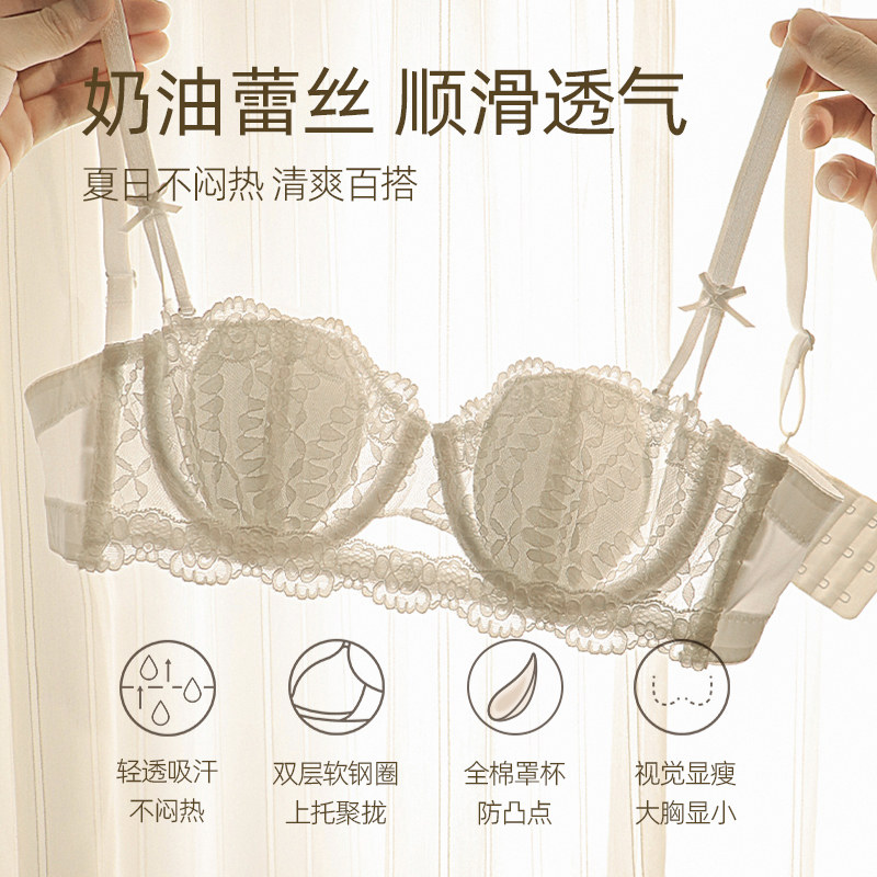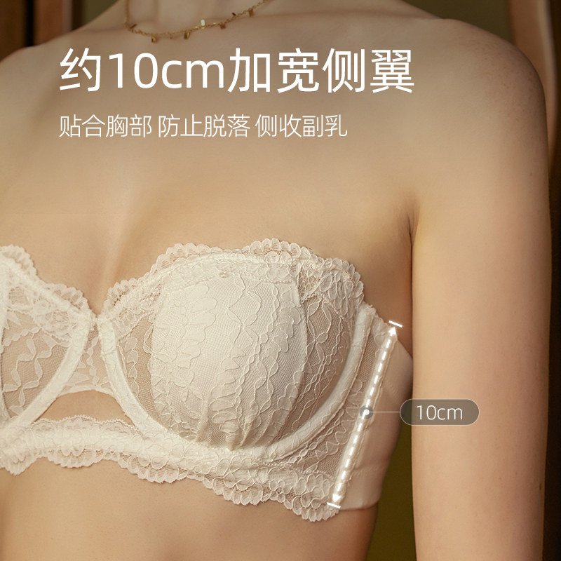 宝诗嫣无肩带大胸显小胸内衣女士性感薄款 防滑抹胸聚拢文胸罩套装