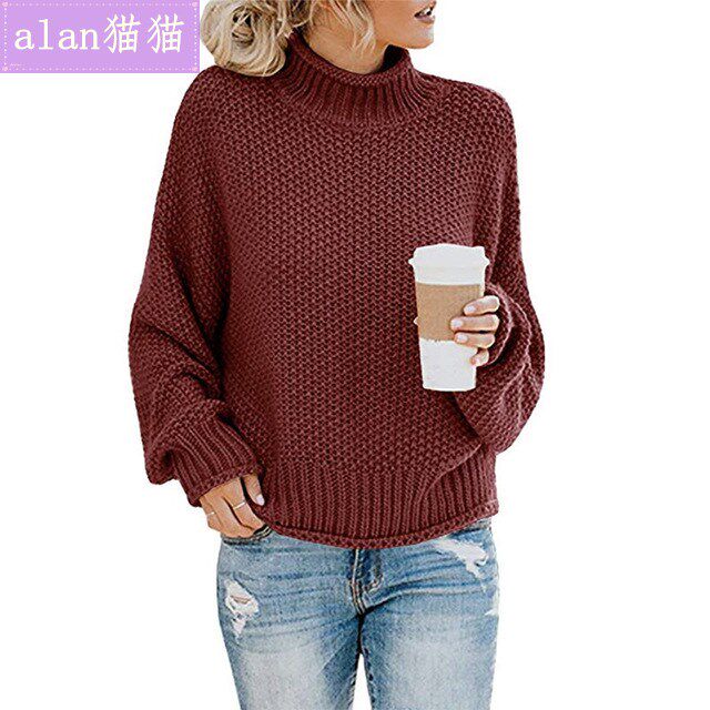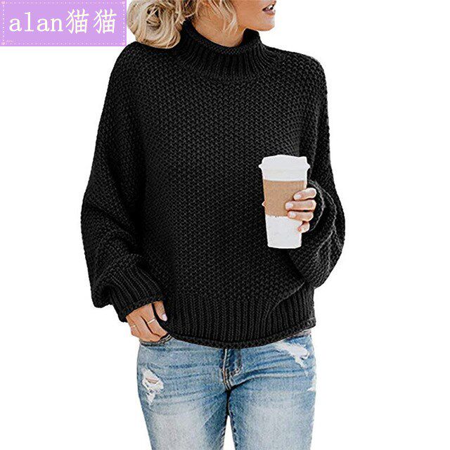 针织打底衫 品牌高级感羊毛衫 女半高领宽松毛衣秋冬加厚羊绒长袖