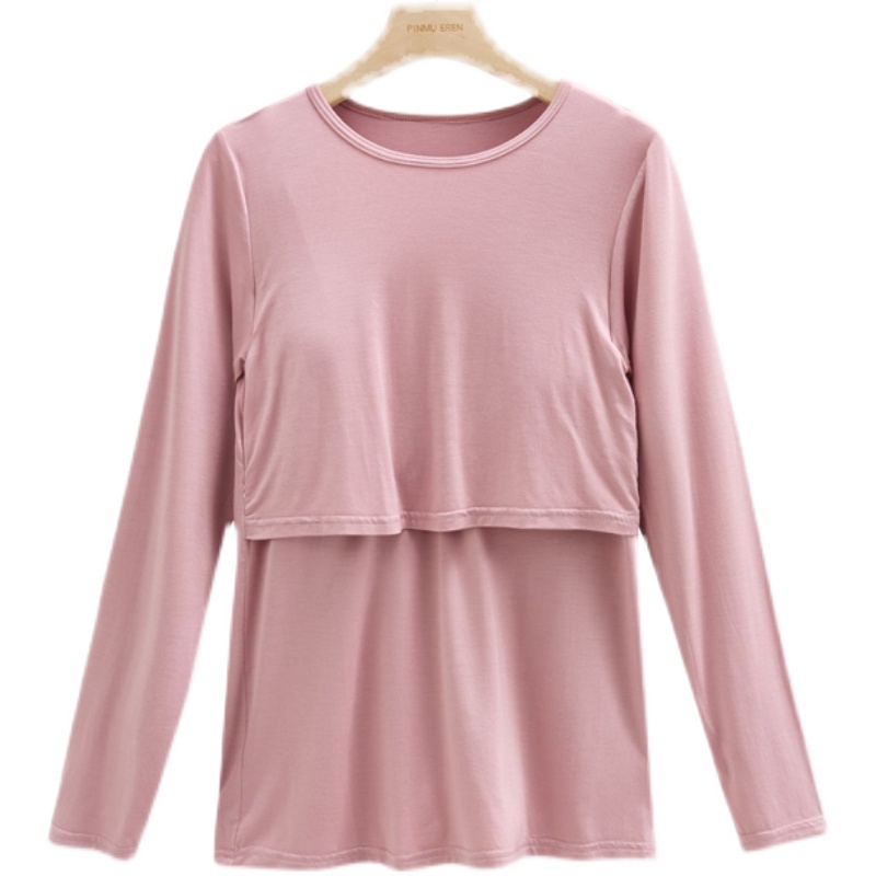 时尚 哺乳衣上衣莫代尔孕妇长袖 产后喂奶衣夏季 薄款 月子服 春秋大码