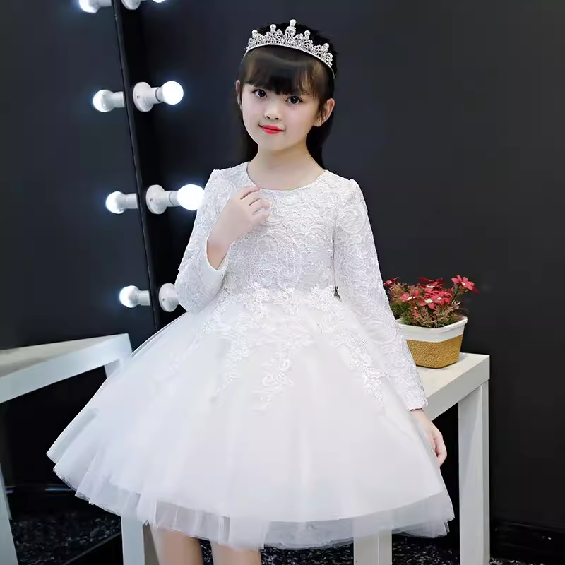 元 旦儿童演出服公主裙中国风小学生合唱舞蹈服女童礼服红色蓬蓬裙