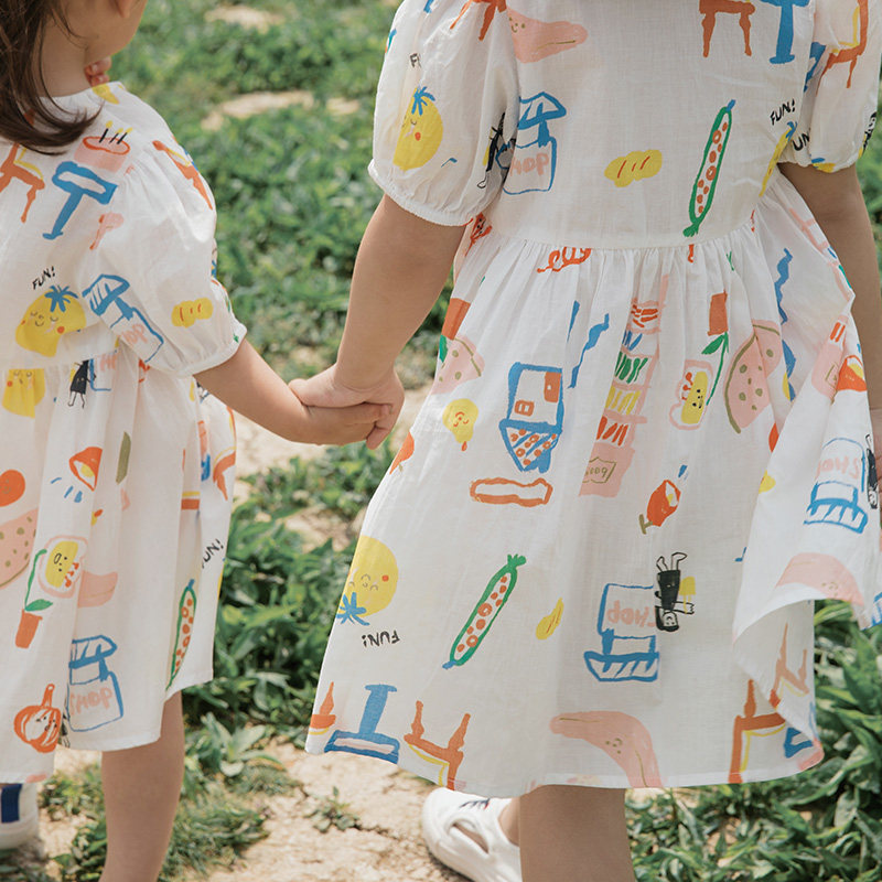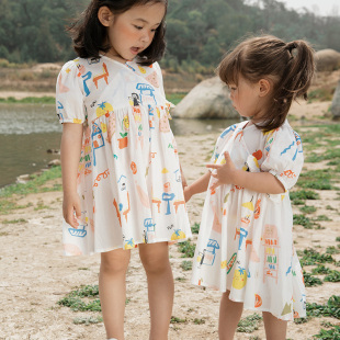 儿童裙子母女款 papa爬爬夏季 连衣裙短裙凉爽度假公主裙 亲子装