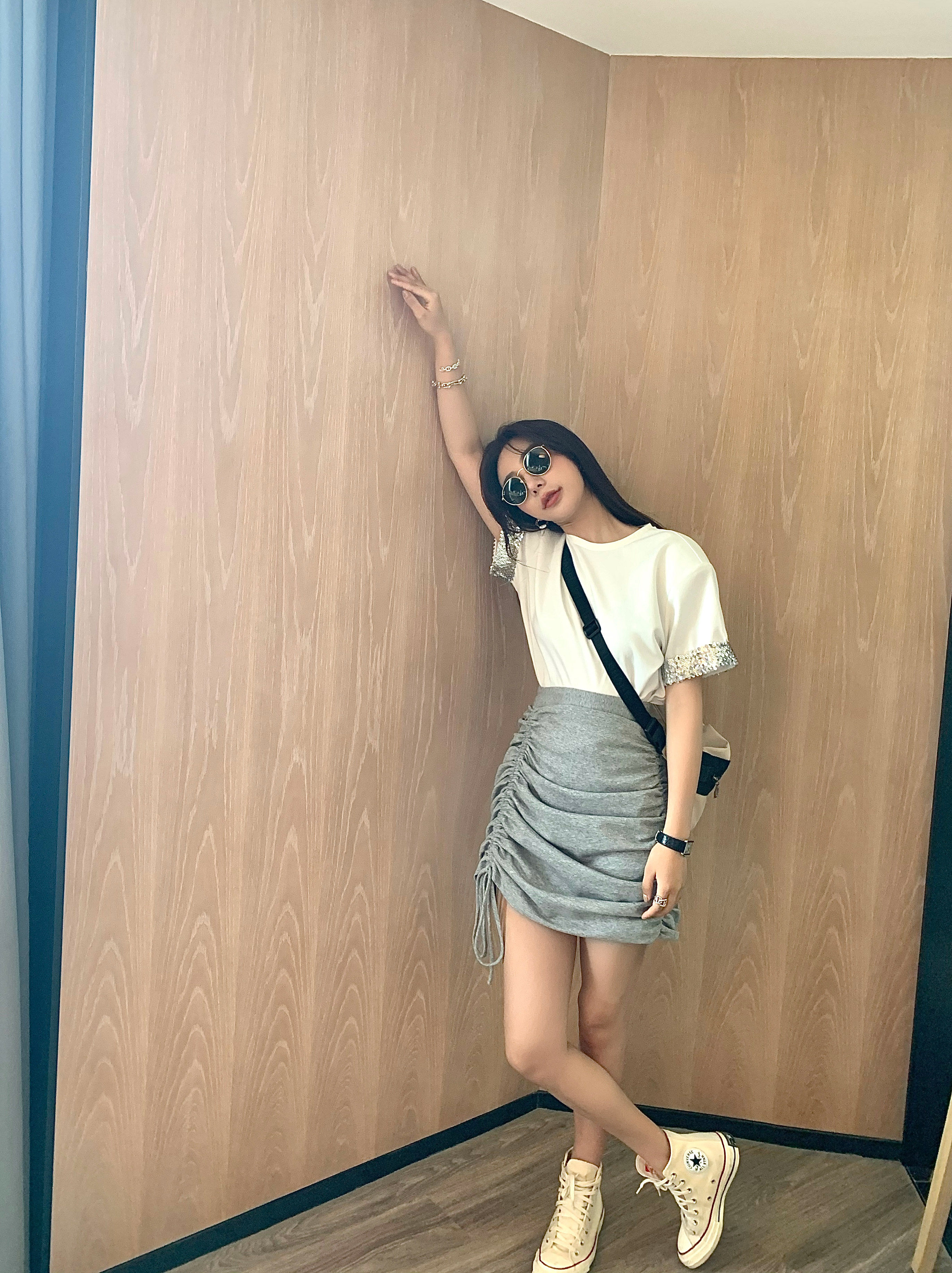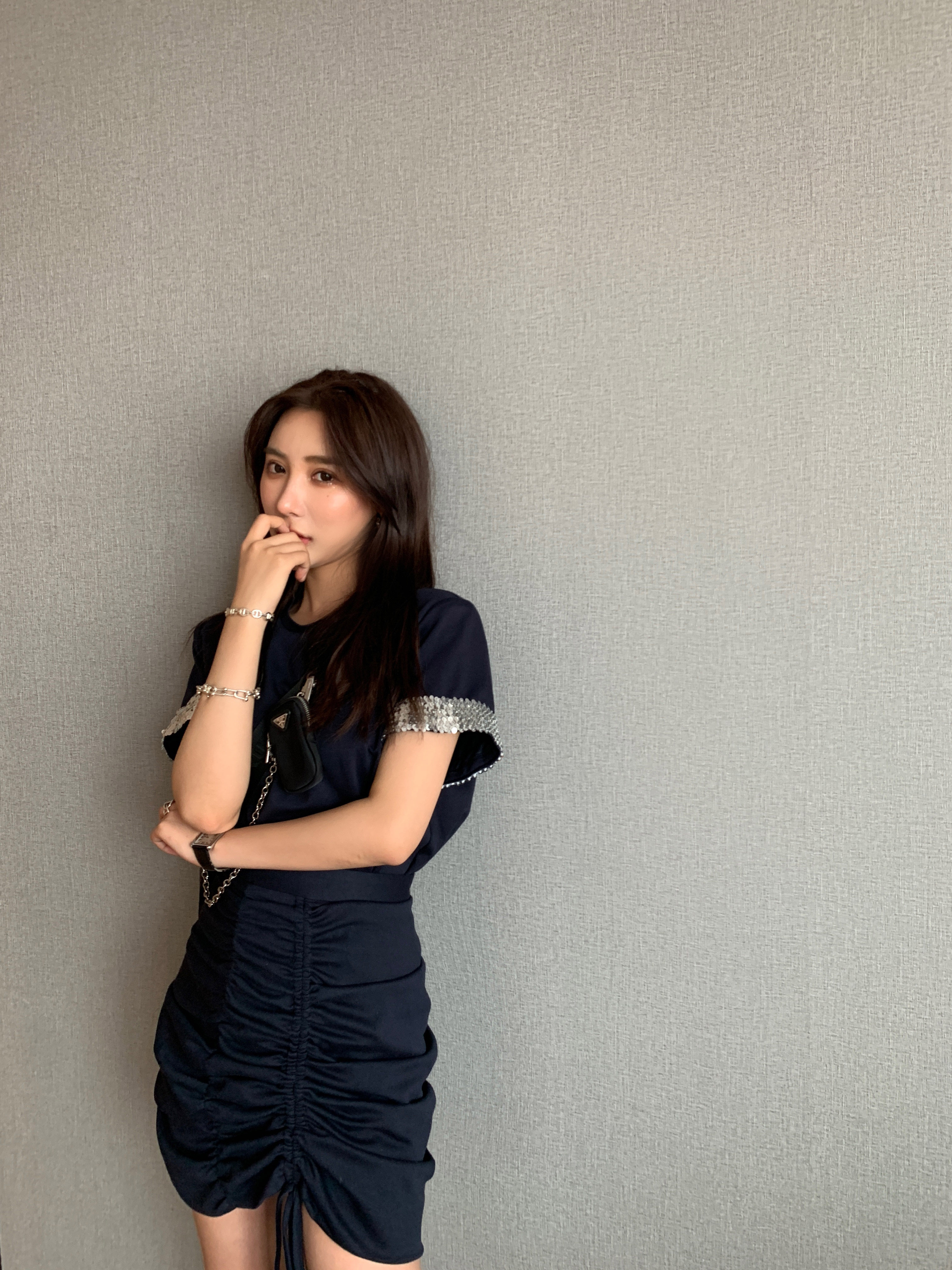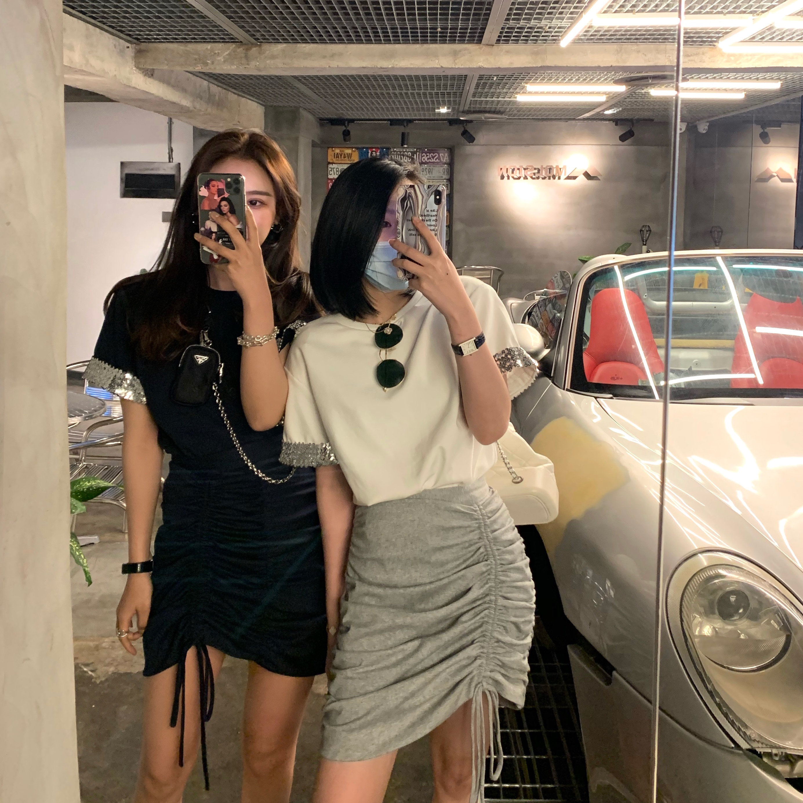 设计感褶皱半裙 口T恤 SCOUT返场款 设计感bling亮片袖
