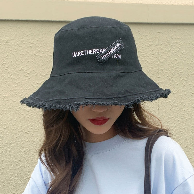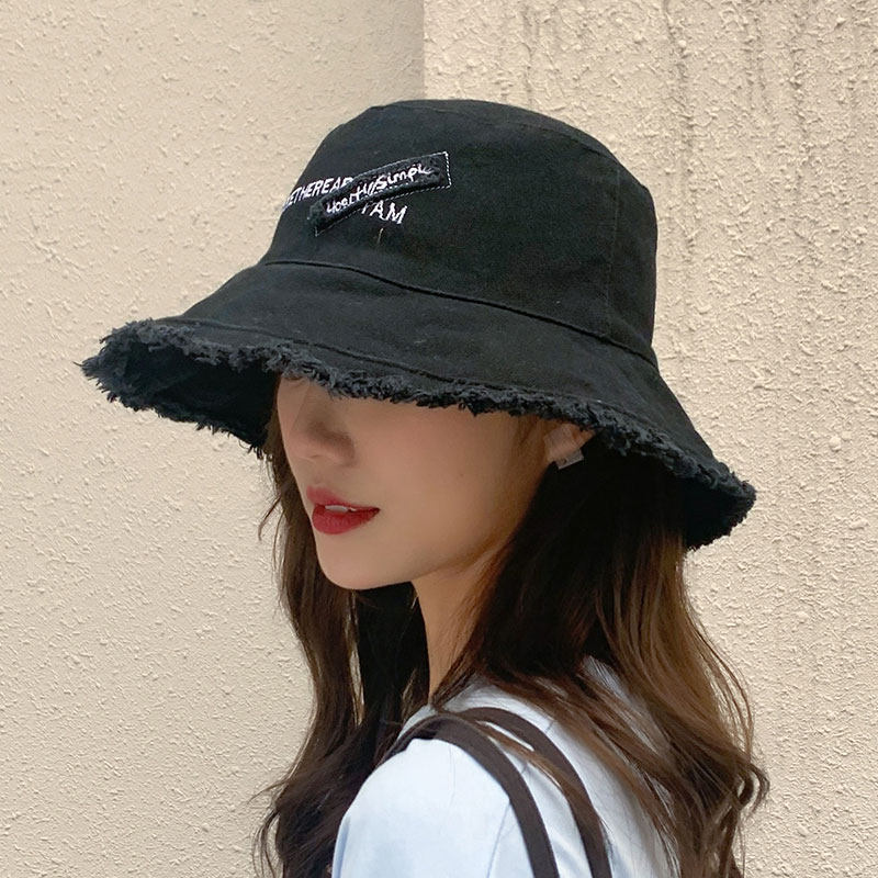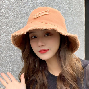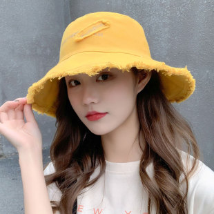 防晒帽 毛边遮阳潮时尚 帽子女夏季 大帽檐字母遮脸夏天大檐渔夫韩版