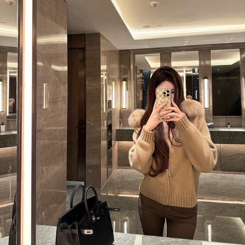 小个子狐狸毛领 美拉德春秋针织开衫 M900外套女2025年新款 连帽短款