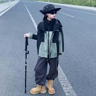 小骆驼儿童冲锋衣三合一可拆卸防风防水中大童登山服女童三防外套