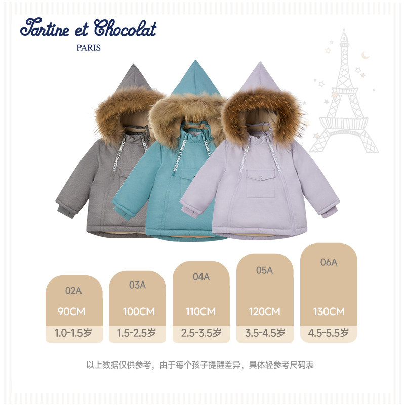 tartineetchocolat法国巧克力童装 秋冬男女童可爱鸭绒羽绒服