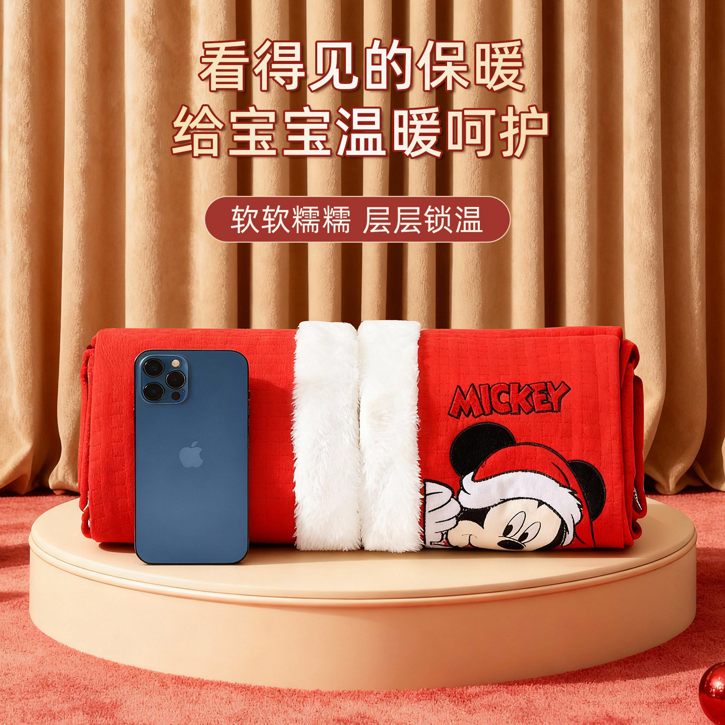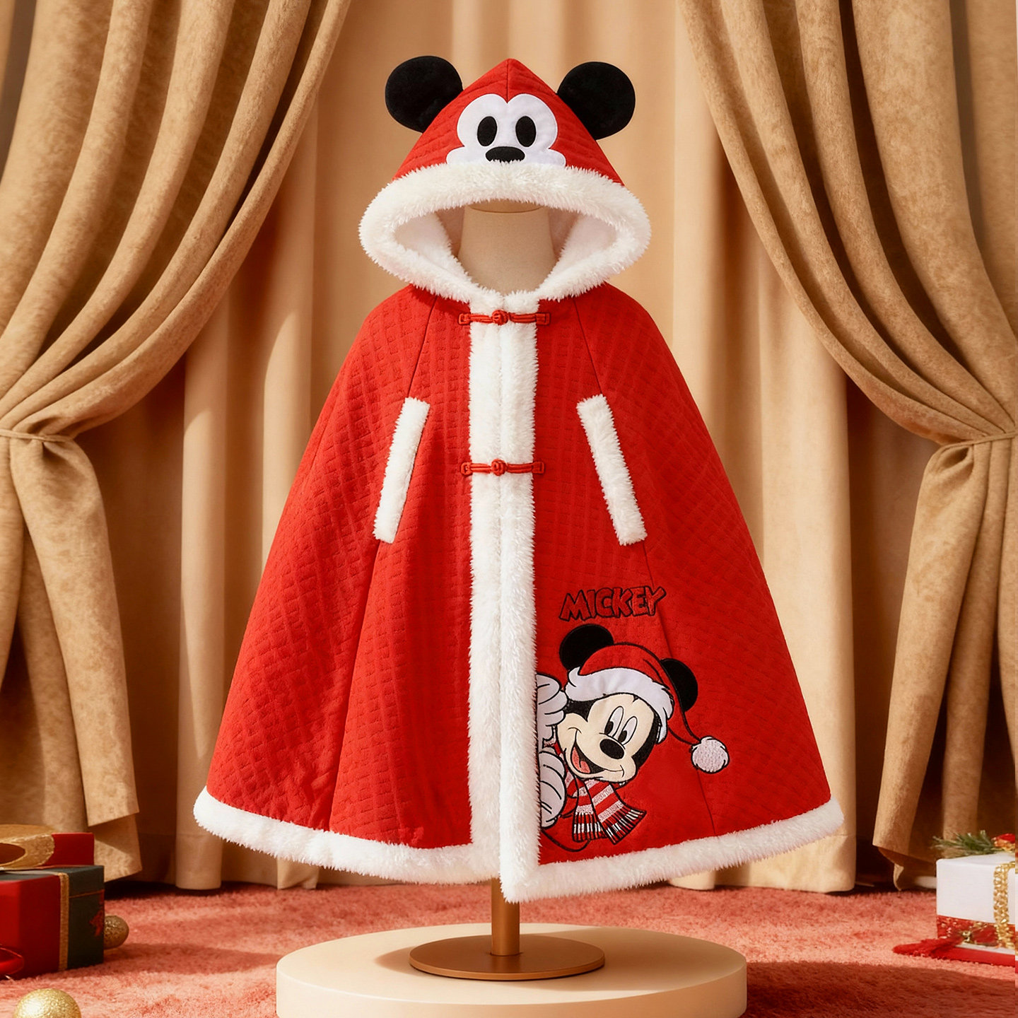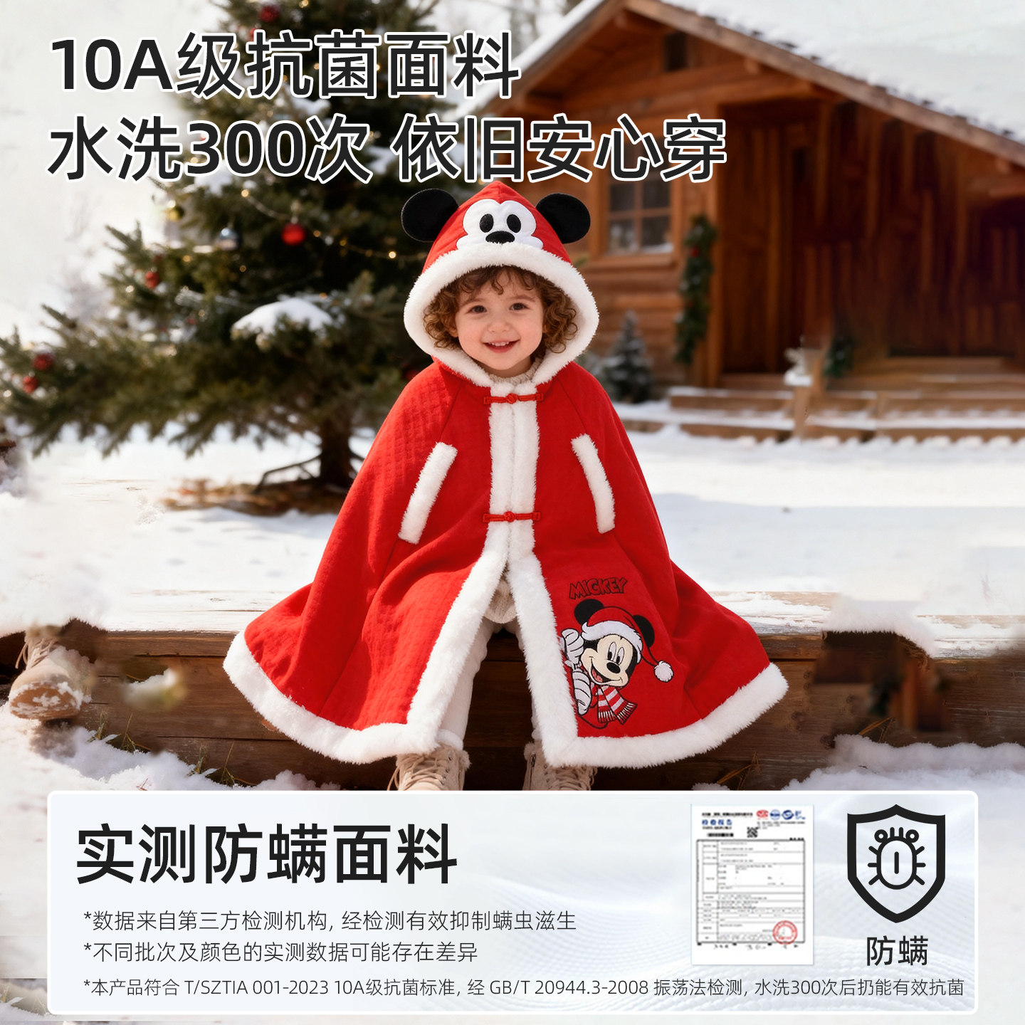 迪士尼婴儿披风斗篷宝宝防风衣春秋冬季 外出加绒抱被拜年喜庆外套