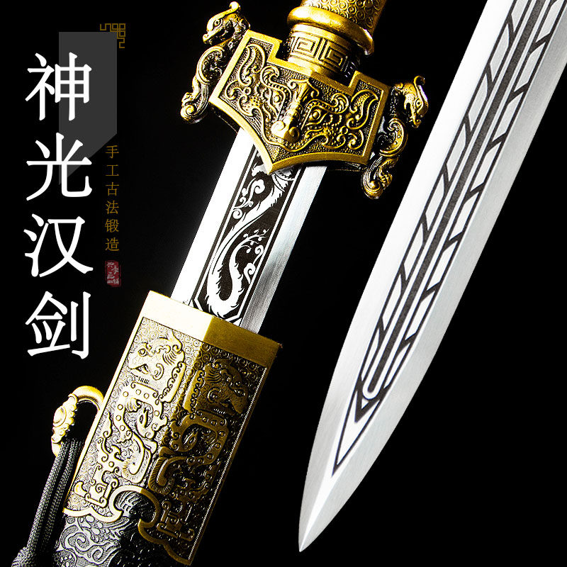 龙泉兴季 宝剑锰钢一体锻打真剑汉剑古风镇宅摆件刀剑冷兵器未开刃