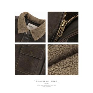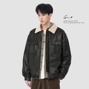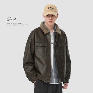 保暖美拉德夹克外套加厚羊羔毛皮衣男 复古重磅pu皮冬季 GWIT 美式