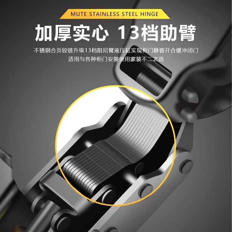 304不锈钢液压阻尼缓冲铰链橱柜衣柜门大弯中弯飞机烟斗合页弹簧