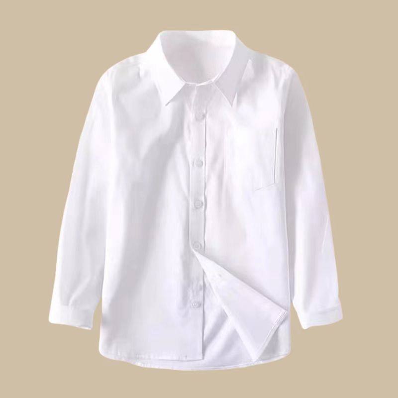 中小学生白衬衫 校服女童白色衬衣男童上衣礼服儿童班服加绒白衬衣