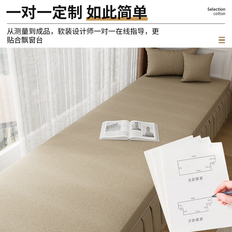棉麻亚麻四季 通用飘窗垫窗台垫阳台垫子可定制卧室海绵榻榻米坐垫