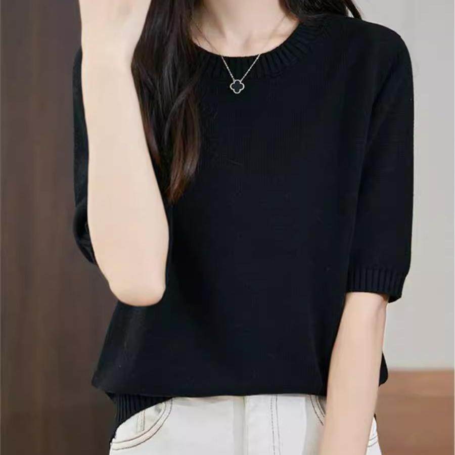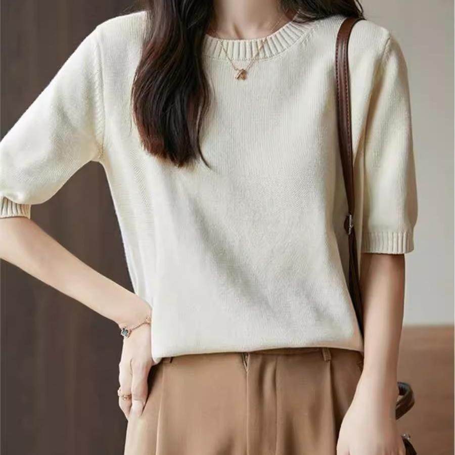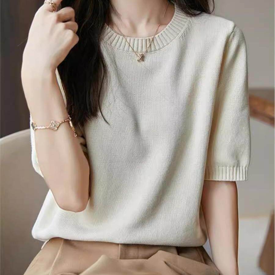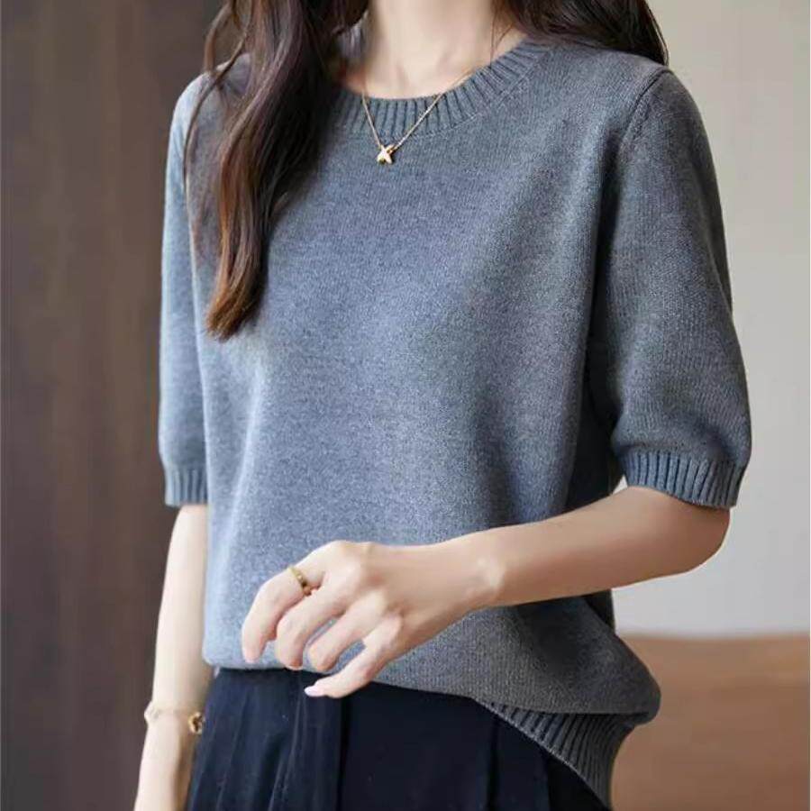 气质简约灰色纯棉短袖 春夏棉线内搭 t恤女加厚秋上衣ins针织打底衫