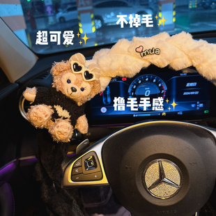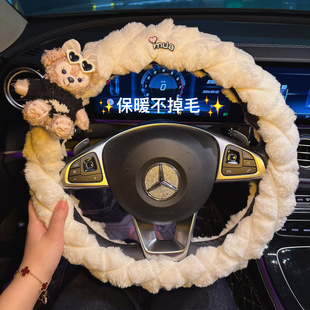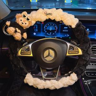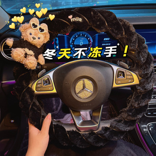 冬季 汽车方向盘把套女冬天保暖 毛绒方向盘套高级感轻奢短毛绒新款