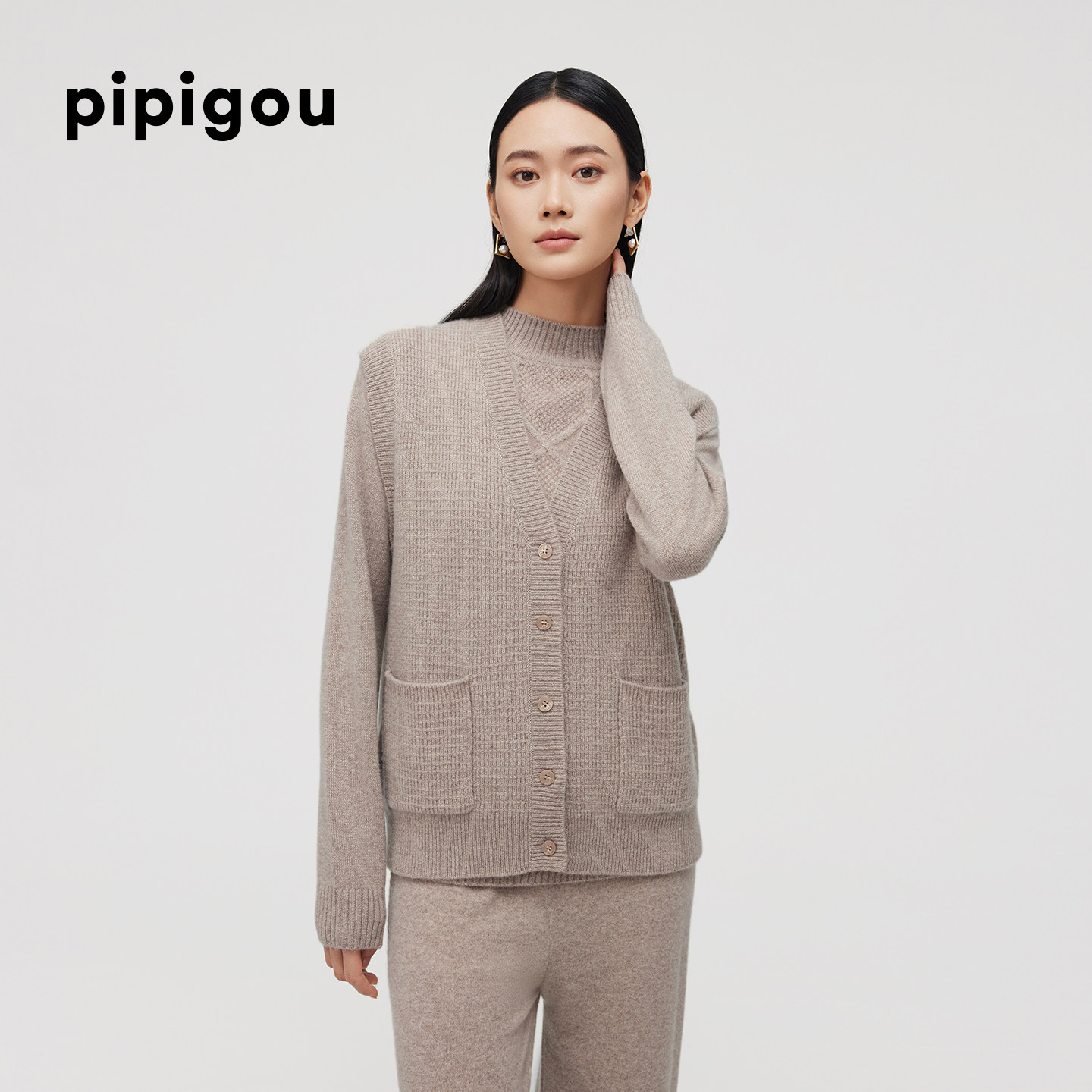 背心 口袋V领羊绒开衫 皮皮狗秋冬新款 简约对称式